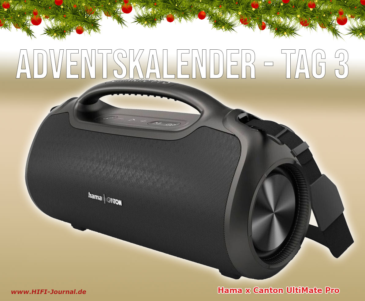 Wir erinnern uns, mit dem Hama Canton Glow Pro (zum Testbericht) und dem Mate Pro (Zum Testbericht) hat man bereits vor einiger Zeit weitere Coop-Produkte in diesem Segment auf den Markt gebracht. Der „UltiMate Pro“ stellt die abermals größere Ausführung dar und möchte es mit Vertretern von JBL und Co. aufnehmen. Mit einer UVP von 249 Euro ist er auch Preis-Leistungstechnisch sehr attraktiv aufgestellt.
