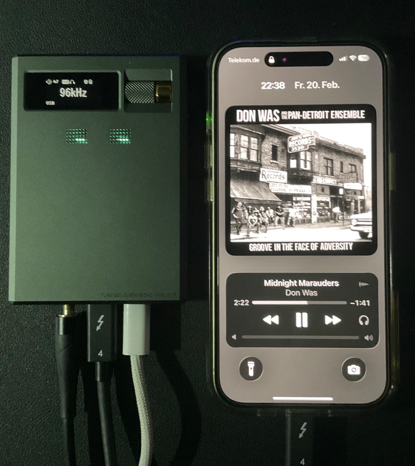 Nun ist er endlich angekommen, der RU9 von Cayin. Wirklich toll verpackt, und er sieht fantastisch aus, koppelt sofort mit dem iPhone, Musik kommt von Qobuz. Das ist bei mir sehr viel Jazz, die alten Sachen von M.Davis & J.Coltrane. Die spielt er relativ neutral und sehr klar. Bei neuen Aufnahmen wie Memories of Home von John Scofield & Dave Holland ist es schon geil diese Details mit dem Kick Wärme zu hören oder Qing Madi mit Favorite Psycho. Alles auf einen Beyerdynamic DT 900proX. Am Schreibtisch bekommt er noch eine extra Portion Strom per