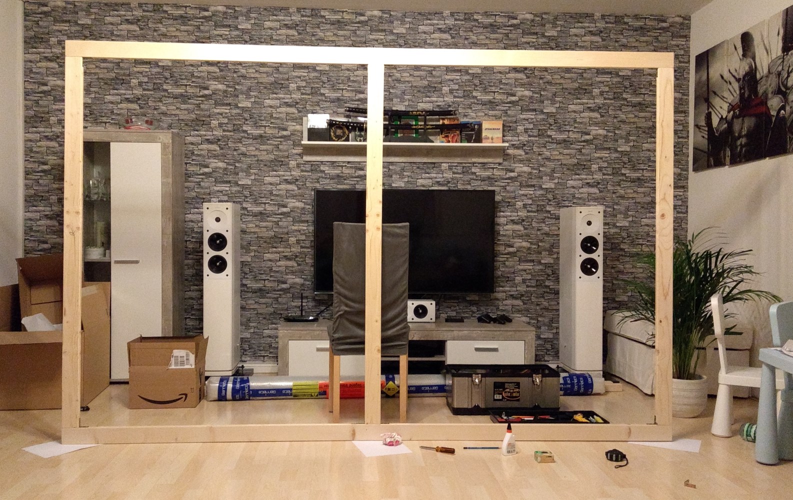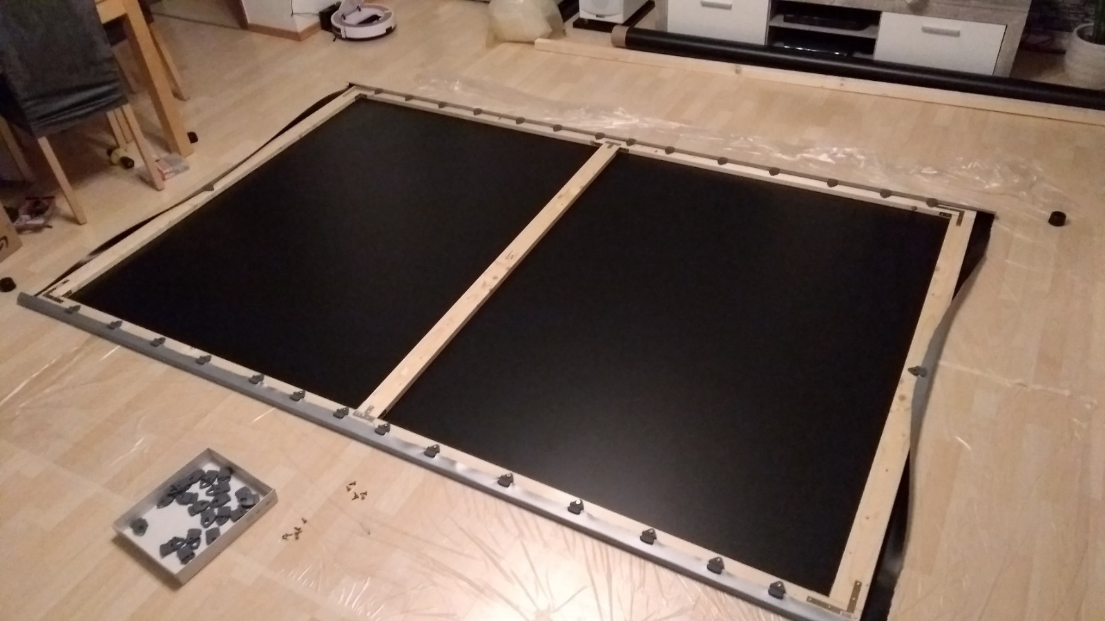 Dann zur Frau gezogen, Papa geworden und 2018 einen Beamer gekauft (auf den gehe ich gleich nochmal extra ein) Das Geld von der Chefin freigegeben, hatte ich mir gesagt: "mach schnell, nicht dass man in der Familie auf eine andere Idee kommt" Planung: selbst faltbare 120" Leinwand mit der beste Folie die man bekommt. Der mittlere Steg, stellte sich später aus Fehler heraus (gleich mehr dazu) Damals im HiFi-Forum "kurz" geschaut und direkt bestell (musste schauen ob ich die Bezeichnung noch finde) Jamos sind damals mit umgezogen + Canton Sub ebenfalls in weiß Alumembran sagte mir damals mehr zu als die Pappe von XTZ. Filz aufgeklebt für eine Maskierung und bessere Kontrast: Test und Verschraubung der Leinwand am Kippmechanismus. GAME - ( Ryzen 7 / RX 9070 / 32GB / B650 ) HTPC - ( Ryzen 5 / GTX 2080 Super / 16GB / B450 ) HIFI - DT 990 Pro, Nubert nuPro-200, Teufel Theater 500, Denon X2500H | |