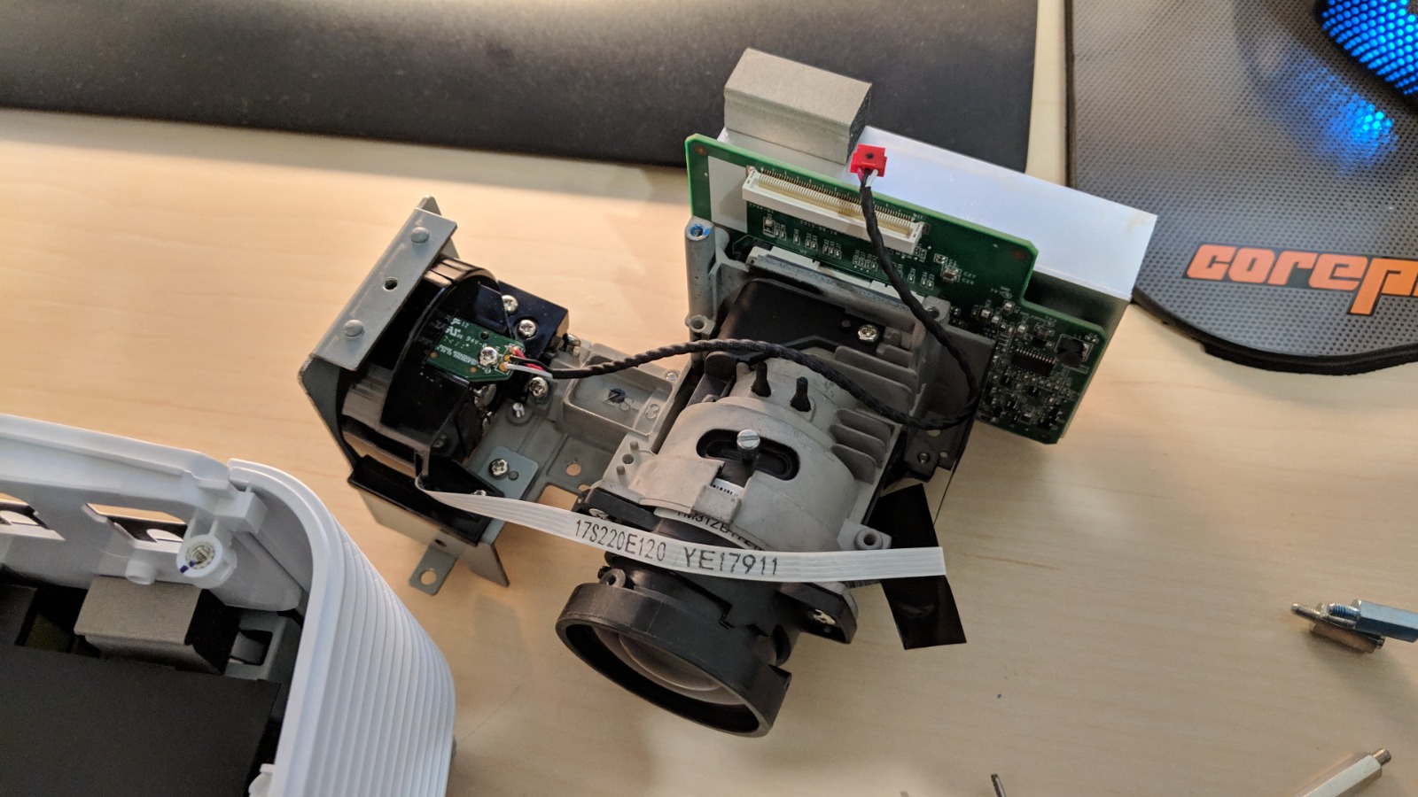 Hab ich quasi später gefixt indem das mittlere Brett mit Winkel weiter nach hinten versetzt. Ebenfalls restliches Filz drauf geklebt damit das Brett auch schwarz ist und für den Fall der Fälle die Folie eine weiche Auflage hat. Man sollte einfach für eine recht schmale Auflage sorgen (falls die Leinwand nicht eingerollt wird) sondern schwenkbar ist. Am besten ist natürlich einfach eine Rahmenleinwand die dort immer hängen kann Kommen wir zum Beamer ... achja. Mein bisher erster Beamer. Full HD Beamer von Optoma - Model HD27. Bisher immer noch in Nutzung Jetzt aber mit einer 120" Leinwand die man einfahren kann - eSmart Tension .. also nix besonderes. Den Beamer abgestaubt (Jahr später) und auch mal ordentlich gepustet ... und siehe da - STAUB im Bild ! Niemals bitte reinpusten !! Nur abstauben. OMG! Schock war entsprechend groß (dadurch vergessen Bild von zu machen - komplettes Bild hell gesprenkelt) Also YOLO - Beamer auf und säubern Platine ausgebaut - KLAR ! muss man alles ausbauen um an den Sensor + Linse zu kommen. GAME - ( Ryzen 7 / RX 9070 / 32GB / B650 ) HTPC - ( Ryzen 5 / GTX 2080 Super / 16GB / B450 ) HIFI - DT 990 Pro, Nubert nuPro-200, Teufel Theater 500, Denon X2500H | |