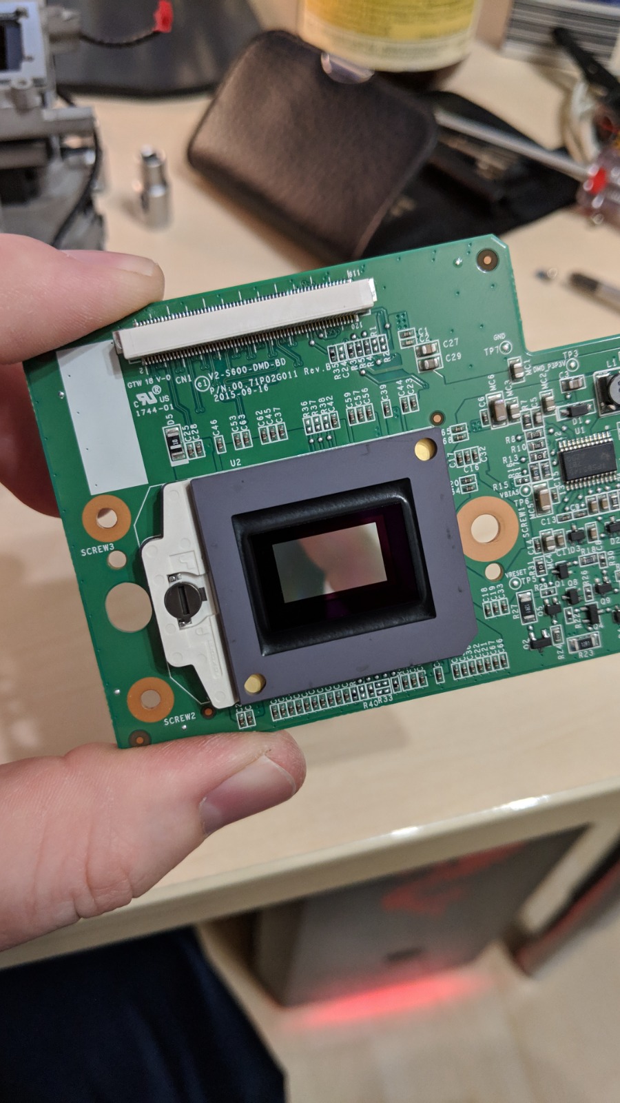 Sorry für die vielen Beiträge. Kann wohl nur 5 Links pro Beitrag hinzufügen: Also von links kommt das Licht und wird auf den DLP Sensor geleitet. Links in der linken Umhausung müsste das Farbrädchen drin stecken. Das eben schon für das richtig eingefärbte Licht sorgt. Verkabelung ist das wohl Stromversorgung sowie Synchronisation zwischen Farbrad und Sensor. Hinter der größeren grünen Platine sitzt ein Kühlkörper. Der gesockelte DLP Sensor wird von hinten gekühlt. Korrigiert mich, wenn ich falsch liege Ein Blick durch die Linse. Sowie diese geschwungene Lichtleitführung. Echt interessant. Zu diesem Zeitpunkt wusste ich natürlich nicht ob ich das jemals wieder zusammen bekomme und alles tut wie es soll. Der gesockelte Sensor. Alles sorgfältig gereinigt. Die Rückseite hat frische Wärmeleitpaste bekommen. Alles wieder zusammengebaut inkl. Birne. Was soll ich sagen - voller Erfolg ! Alles wie vorher. Da war ich schon etwas stolz auf mich Eben Frau nach dem Zeitraum gefragt um die Bilder zu finden. "Der Beamer war kaputt, was ?!?!" ... Oooops xD GAME - ( Ryzen 7 / RX 9070 / 32GB / B650 ) HTPC - ( Ryzen 5 / RTX 2080 Super / 16GB / B450 ) HIFI - DT 990 Pro, Nubert nuPro-200, Teufel Theater 500, Denon X2500H | |