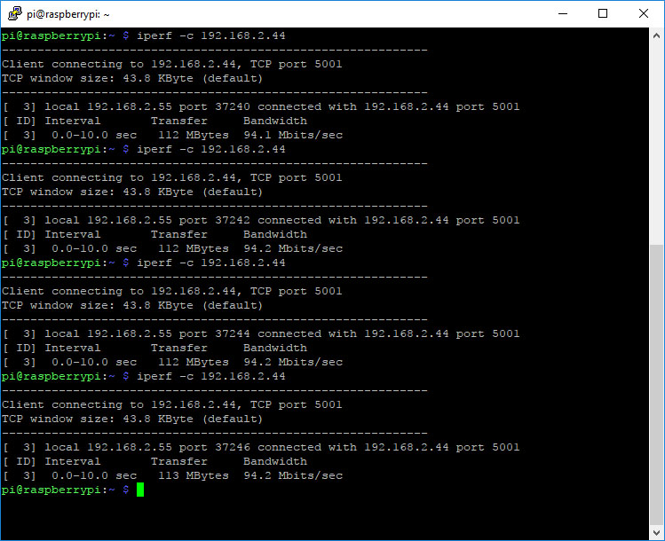 Sämtliche Performance-Messungen finden mit dem Linux-Tool „iperf“ statt. Dieses läuft auf meinem PC im Hobby-Keller im Server-Modus. Auf einem Notebook, welches in sämtlichen Räumen als Mess-Gerät verwendet wird, läuft dasselbe Tool im Client-Modus. In einem 10 Sekunden andauernden Test wird mit diesem die Übertragungs-Geschwindigkeit gemessen. Dabei werden 5 Test-Läufe durchgeführt und deren Durchschnittswert als Messwert genommen. Wie zu erwarten war, ist die Signal-Stärke im Obergeschoss nur noch sehr schwach, was man vor allem an den Übertragungsraten in den hinteren Räumen erkennt. Szenario 2 ist gekennzeichnet von einer fast flächendeckend guten Übertragungsrate. Einzig im Erdgeschoss schwächelt das Signal ein wenig. Szenario 3 sorgt zwar in den vorderen Räumen für sehr gute Übertragungsraten, lässt diese aber im hinteren Bereich zu sehr einbrechen. Ein Streaming von Film-Material wird hier nicht mehr möglich sein.