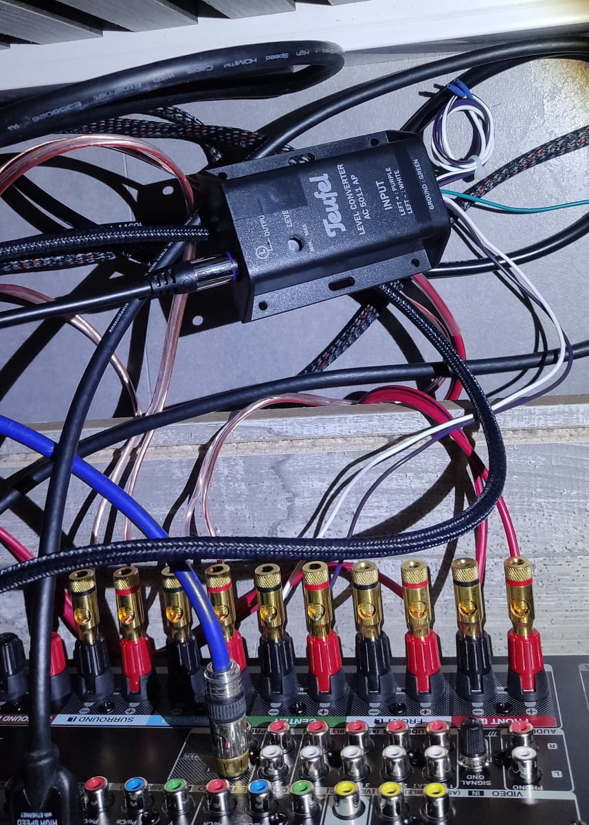 Hallo zusammen, ich möchte den Thread hier nutzen und mein Feedback zu der Soundbar teilen. Zuerst aber nochmals ein herzliches Dankeschön! das ich der Glückliche bin der solch eine Soundbar sein Eigen nennen darf. Die Nubert AS-3500 hat sich schon gut eingelebt (auch wenn die Verkabelung noch nicht gemacht ist) und wurde auch sofort angenommen in der Familie. Hier mal ganz simpel eine Blu Ray zum Größenvergleich: Räumlich ist der Soundbar direkt anzusehen das sie wohl hauptsächlich in Wohnzimmer / größere Räume einziehen wird. Das ist natürlich jedem selbst überlassen Den TV Sound ersetzt die Soundbar seit Tag 1. Bisher hatte ich nur für eine kleinen Hörtest Zeit. Wir haben uns auch sehr schnell an die Voice+ Funktion gewöhnt. Auch dort kann der Klang und Tiefgang überzeugen und hilft dem Bild einfach um Längen! Auch die nach vorne gerichteten Lautsprecher des METZ BLUE TVs, haben hier in keinster Weise eine Chance. Wenig überraschend bei diesem Gegner Die Soundbar ist über HDMI direkt mit dem TV verbunden und schaltet sich somit auch automatisch AN/AUS. Auch die Lautstärke wird dann mit der TV Fernbedienung geregelt. Leider bekommt man keine Zahl angezeigt an der man sich orientieren kann. Platzhalter "TV Lautstärke" Darstellung Zur Lautstärke: Voll aufdrehen konnte ich die Soundbar bisher nicht. Wirklich heftig! Auch fehlt es nicht an Dynamik wenn in erhöhter Lautstärke gespielt wird. Das habe ich bei aktiven Lautsprechern auch schon anders erlebt. Ist Loudness aktiviert, ist es abends kaum möglich "leise" zu hören. Rücksicht auf einschlafende Kinder geht somit nur mit deaktivierter Loundess. Dann kann man sehr fein dosieren, anders ist zwischen MUTE und der ersten Stufe der Lautstärke doch schon ein gewisser Pegel vorhanden. Dafür sind aber eben auch die verschiedenen Profile auswählbar. Da bin ich ehrlich gesagt noch etwas in der Findungsphase. Wenn alles etwas zur Ruhe kommt, möchte ich mir die Zeit nehmen und verschiedene Settings für Musik und TV testen und einprogrammieren (einfach die "P" - Taste gedrückt halten bis alle LEDs um das Steuerrad weiß aufleuchten - gespeichert. Sind die verschiedenen Farben und Anordnungen der LEDs rund um das zentrale Steuerrad erst einmal verinnerlicht (bebilderte Anleitung anbei), ist es in Zukunft recht schnell und einfach zu konfigurieren. Anfangs dachte ich erst, es wäre besser die Profile je nach Source zu konfigurieren. Nubert sollte recht behalten. Schon ist der Usecase da ! Die unterste Reihe der Fernbedienung lässt somit 3 verschiedene Konfigurationen zu. In meinem Fall wären das folgende: P1 - TV tagsüber (loudness ON; Voice+) P2 - TV abends (loundess OFF; Voice+) P3 - Center Speaker Was hab ich denn bitte getrieben seit dem die Soundbar da ist ? ... nun, die vorweihnachtliche Zeit ist leider nie wirklich ruhig. Daher hatte ich bisher nicht die Zeit, die eben die Soundbar verdient. Mein Ziel ist es, diese eben auch als Center Lautsprecher nutzen zu können. Da ich mit dem PreOut am Denon AVR-X2500H nicht wirklich weitergekommen bin (für jede Hinweis/Idee dankbar) Hatte ich den folgenden Anlauf gestartet: Ein Level Converter + Y-Chinch Kabel: Normal nutzt Teufel diesen um zB eine REAR Station anzuschließen. High Output in Low Output verwandeln, das Signal dann abgreifen und via Funk/WLAN an die REAR zu schicken (hab da keine Erfahrungswerte) Gut, hier bräuchte ich also nur einen Kanal, gesagt, getan: Soweit vorbereitet dann angeschlossen: Vorweg: Es funktioniert ! Aber klanglich wohl nicht so einfach wie ich mir das vorgestellt habe. Wenn hier jemand schon einen ähnlichen Spagat gemacht haben sollte, lasst es mich wissen Ich werde mir noch einige Lieder raussuchen und diese anhören wenn ich mit der Einstellung zufrieden bin. Durch die Sanierung ist noch einiges zu tun (hängt kein einziges Bild an der Wand womit der Raumklang ebenfalls noch ein anderer ist) Ich wollte trotzdem schon einmal hiermit auch meinen Dank ausdrücken. Die Soundbar ist "mächtig" und evtl. nicht für jeden Haushalt machbar. Auch kann die größere schwarze Fläche "einladen" für irgend eine Deko Wenn der TV natürlich direkt drauf steht, hat sich das Thema erledigt. Soweit erst mal von mir Liebe Grüße und eine schöne Weihnachtszeit ! Achja - wenn ich das richtig sehe, habe ich da die Büchse der Pandora geöffnet. Man kann sich wohl Pre-Outs ziehen indem man den Receiver umlötet ... ich muss mich wohl einlesen, dann könnte ich wohl direkt anschließen. Mal schauen ... stay tuned ! GAME - ( Ryzen 7 / RX 9070 / 32GB / B650 ) HTPC - ( Ryzen 5 / RTX 2080 Super / 16GB / B450 ) HIFI - DT 990 Pro, Nubert nuPro-200, Teufel Theater 500, Denon X2500H | |
