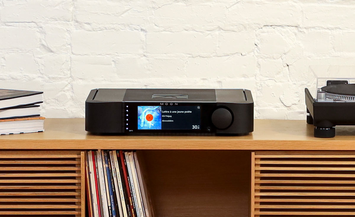 Ein 17 cm großer Farbbildschirm zeigt Albumcover, Titelinformationen und Systemeinstellungen übersichtlich an. Gesteuert wird der MOON 371 wahlweise über die neue CRM-4-Metallfernbedienung oder direkt am Gerät. Das Gehäuse wird in Kanada gefertigt und besteht aus hochwertigen Materialien, die für Stabilität und Langlebigkeit sorgen.