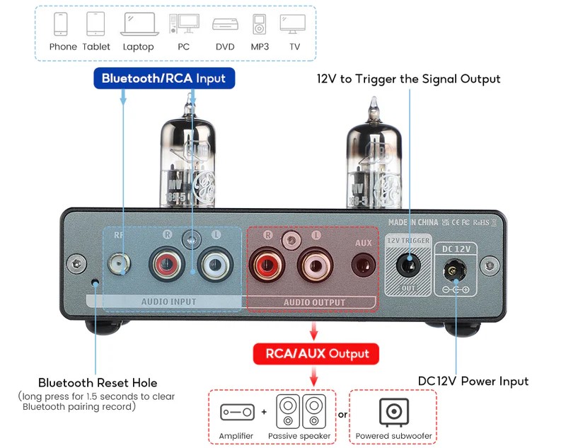| 2x 6186 Tube, 12V Trigger, Bluetooth 5.0 |