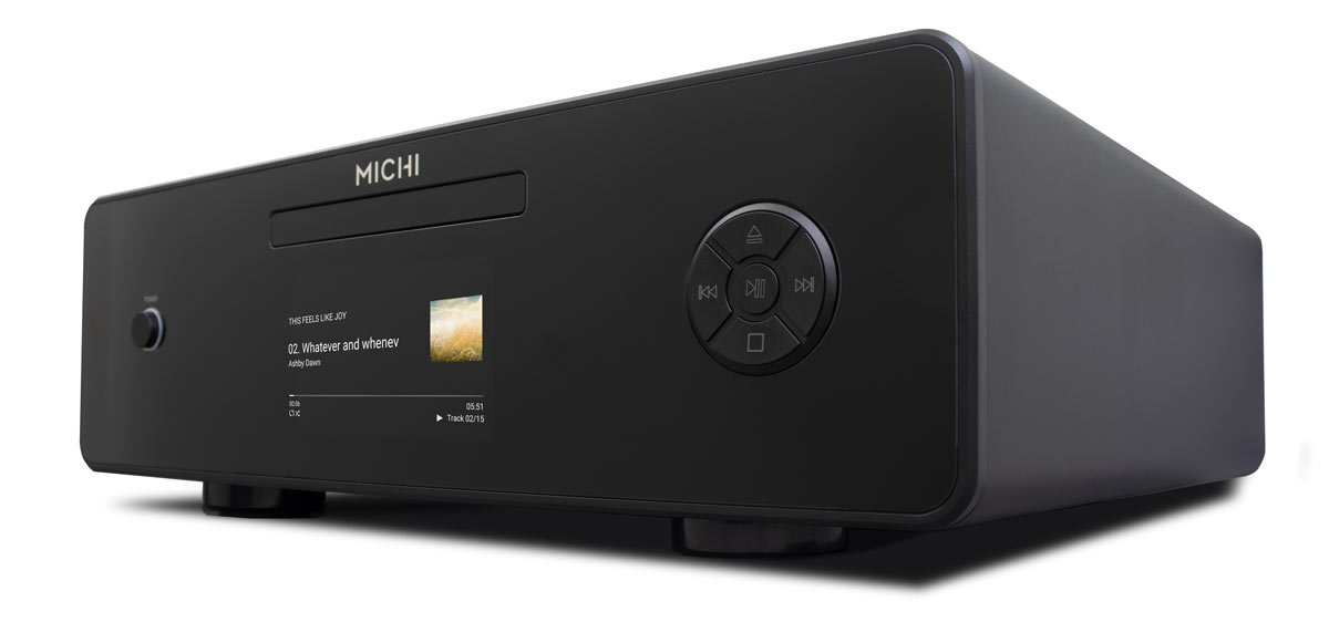 Anschlussseitig bietet der CD-Player sowohl unsymmetrische Cinch- als auch symmetrische XLR-Ausgänge. Zusätzlich steht ein koaxialer Digitalausgang für die Nutzung mit externen DACs zur Verfügung. Die Front wird von einem Farbdisplay geprägt, das neben Wiedergabeinformationen auch Albumcover darstellen kann. Das Gehäuse besteht aus präzise gefertigtem Aluminium und ist formal auf die übrigen Michi-Komponenten abgestimmt.