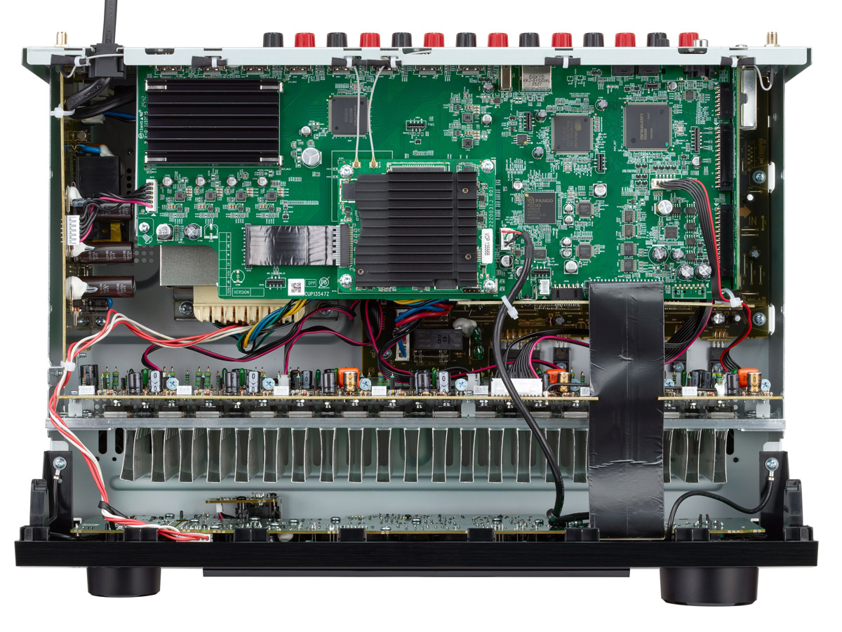 Im Zentrum beim neuesten Produkt steht dabei eine klassische Verstärkerarchitektur mit einer Ausgangsleistung von 90 Watt pro Kanal, was den AVR für typische Heimkino-Anwendungen auslegen soll. Laut Hersteller wurden verschiedene Komponenten überarbeitet, um eine präzisere Detaildarstellung und eine klarere Surround-Abbildung zu erreichen.