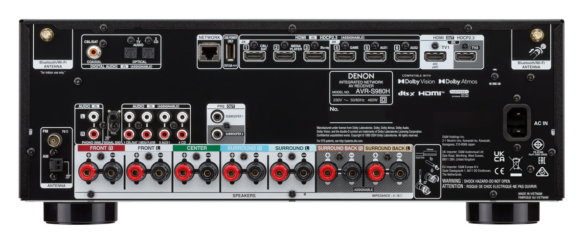 Auch in Sachen Ausstattung zeigt sich der AVR-S980H vielseitig. Unterstützt werden gängige Streaming-Standards wie Bluetooth, Apple AirPlay 2 und Spotify Connect. Darüber hinaus ist das Gerät in das Multiroom-System HEOS integriert. Damit lassen sich kompatible Lautsprecher im Heimnetzwerk verbinden und Inhalte parallel in mehreren Räumen wiedergeben. Die Steuerung erfolgt über die HEOS-App.