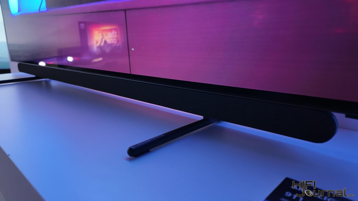 Schlank und elegant positionierte Soundbar an der Unterseite
