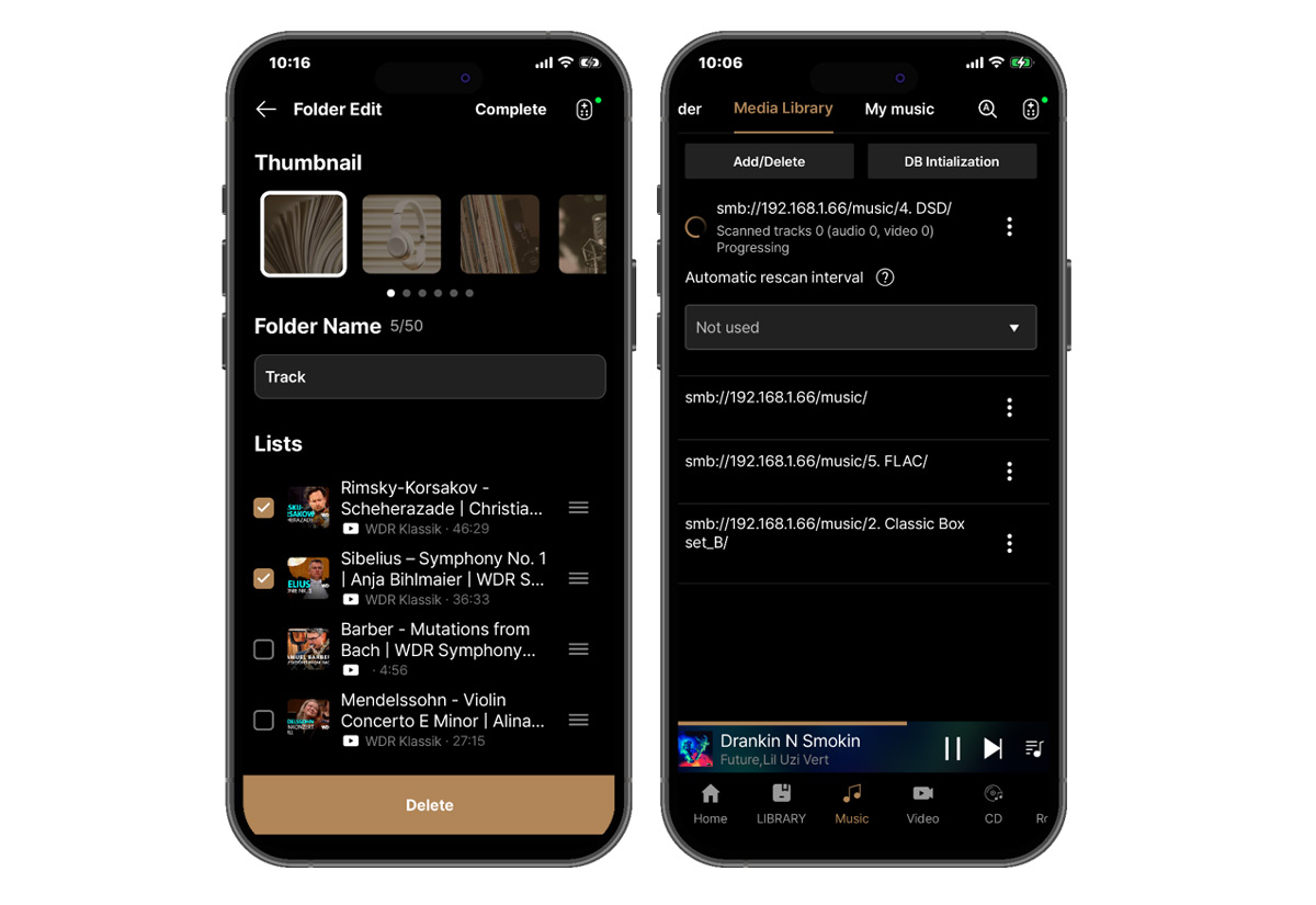Verbesserungen gibt es auch bei der Verwaltung lokaler und gestreamter Inhalte. So sollen sich nun mehrere Titel gleichzeitig bearbeiten und die Verfügbarkeit von Netzwerk- oder DLNA-Inhalten direkt innerhalb der Listen überprüfen lassen. Zusätzlich wurden Profil- und Social-Funktionen optisch und funktional überarbeitet.