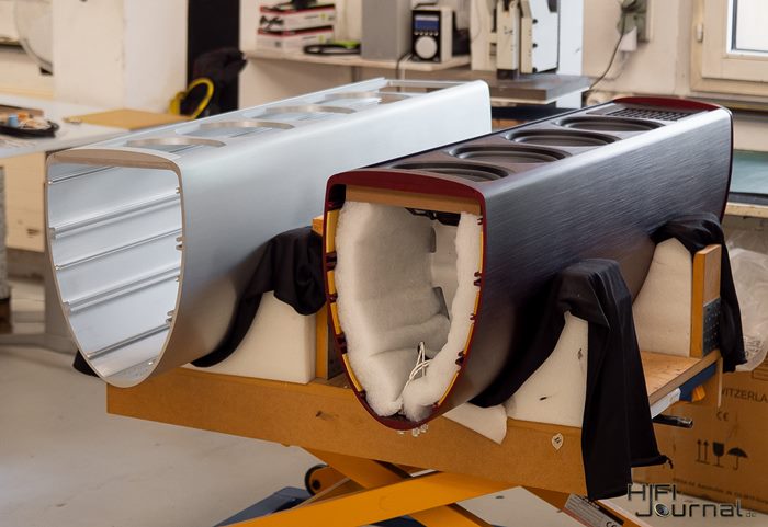 Über jeden Zweifel erhaben sind die Haptik und die Optik der PIEGA COAX 411. Die Schweizer Klangskulptur wird vor Ort in Handarbeit aus Aluminium-Strangguss hergestellt. Damit ist der Satz „Der Lautsprecher sieht aus, wie aus einem Guss.“ Nicht nur ein Spruch, sondern eine Tatsache. Das eloxierte Metall ist absolut makellos und fast zu schade zum Anfassen. Wir haben das aus Testzwecken dennoch getan und können von einem echten Handschmeichler sprechen, auf dem keine Fingerabdrücke zurückbleiben. Wie sich die farblichen Möglichkeiten in der Praxis widerspiegeln, haben wir u. a. auf der zurückliegenden High End 2025 in München per Video festgehalten: