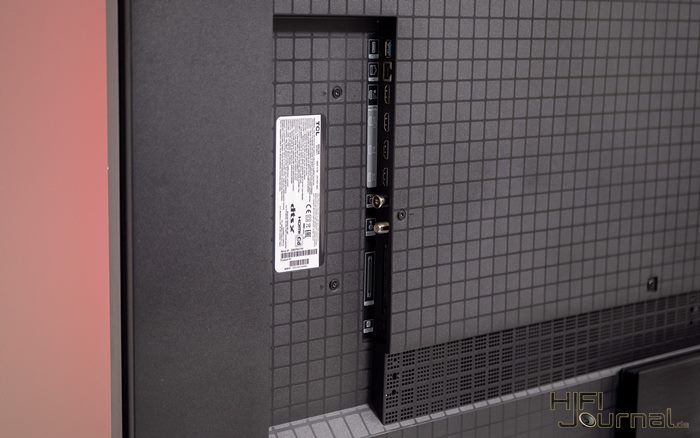 Das Gehäuse respektive das Design des TVs ist wirklich elegant und schlank gestaltet worden. Wer möglichst wenig Technik um sein Panel, dafür eine gewisse Eleganz erhalten möchte, der ist hier goldrichtig. Gerade einmal 6 Zentimeter ist das Gehäuse nach hinten in der Tiefe dick. Auf der Rückseite kommt ein Kacheldesign zur Geltung.