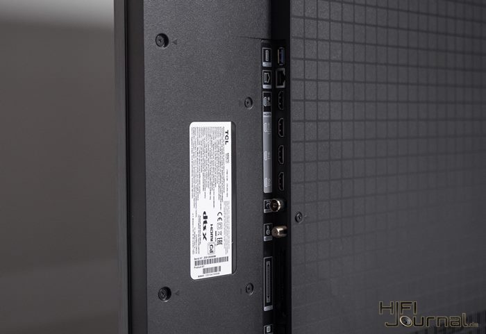 Zwei HDMI-2.1-Eingänge mit einer Bandbreite von jeweils 48 Gbit/s sowie zwei zusätzliche HDMI-2.0-Ports (18 Gbit/s). Einer der HDMI-2.1-Ports unterstützt eARC, wodurch hochwertige Audioformate wie Dolby Atmos oder DTS:X zuverlässig an eine kompatible Soundbar oder AV-Anlage zurückgeleitet werden können. Funktionalitäten wie ALLM, VRR und CEC sind ebenfalls integriert. Ergänzend stehen ein digitaler optischer Audioausgang (S/PDIF), ein CI+-Schacht, ein Ethernet-Anschluss mit 100 Mbit/s und ein USB-3.0-Port bereit. Ein klassischer, analoger Klinkeneingang für Kopfhörer oder andere Audio-Geräte, ist leider nicht vorhanden. Für die kabellose Kommunikation sind Bluetooth 5.4 sowie WiFi 5 verbaut.