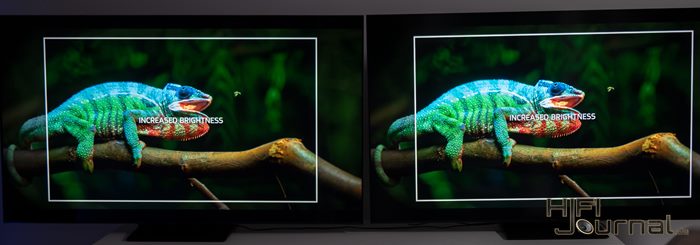 Im direkten 1:1-Vergleich konnte, bei abgedunkelten Verhältnissen und natürlich auch bei den Messwerten, kein wirklicher Unterschied festgestellt werden. Beide Modelle erreichen, sowohl mit dem glänzenden Panel und der mattierten Schicht einen 10%-Bild-Peak im Filmmaker Mode von rund 1600 nits. Fullwhite sind es knapp 600 nits. Auf den nächsten Seiten kommen wir dann zu weiteren detaillierten Labormessungen.